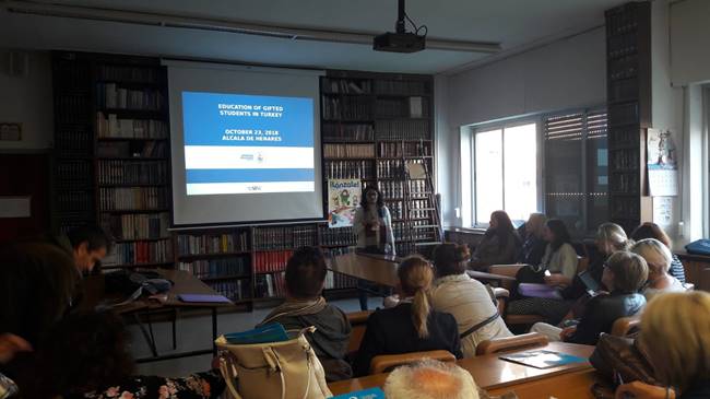 Another aspect of the project requires collaborative work with universities. Angeles Bueno, PhD., from Camilo Jose Cela University, who carried out various studies on gifted students, made a workshop on cooperative learning model and arranged various group works on basic principles of cooperative learning and its use in education of gifted students. Workshop on qualifications of the group work on cooperative learning was very efficient and applications done improved awareness of the participant teachers.